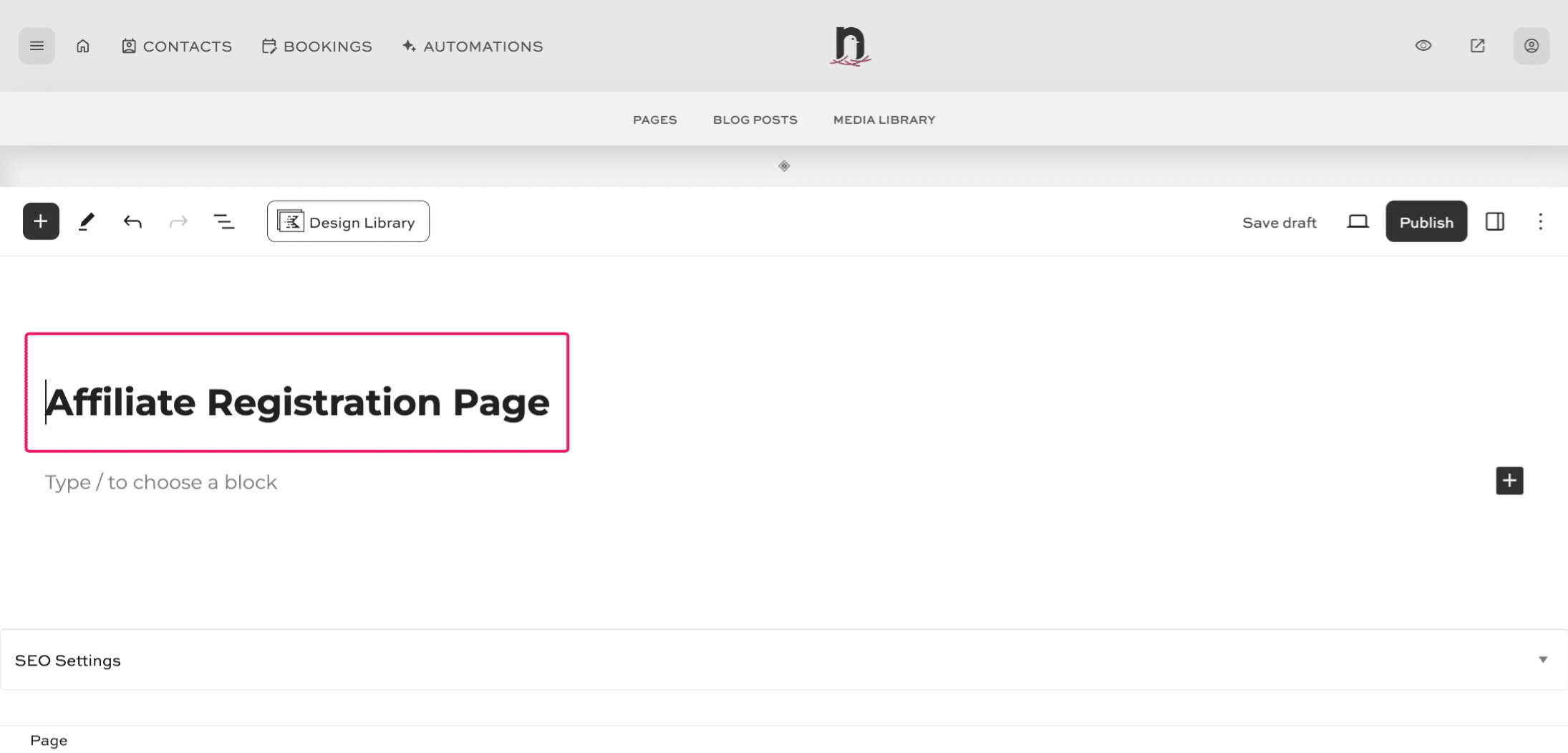 Paste the following shortcode into the shortcode block: [slicewp_affiliate_registration] Then click on "Publish" and you're done!
