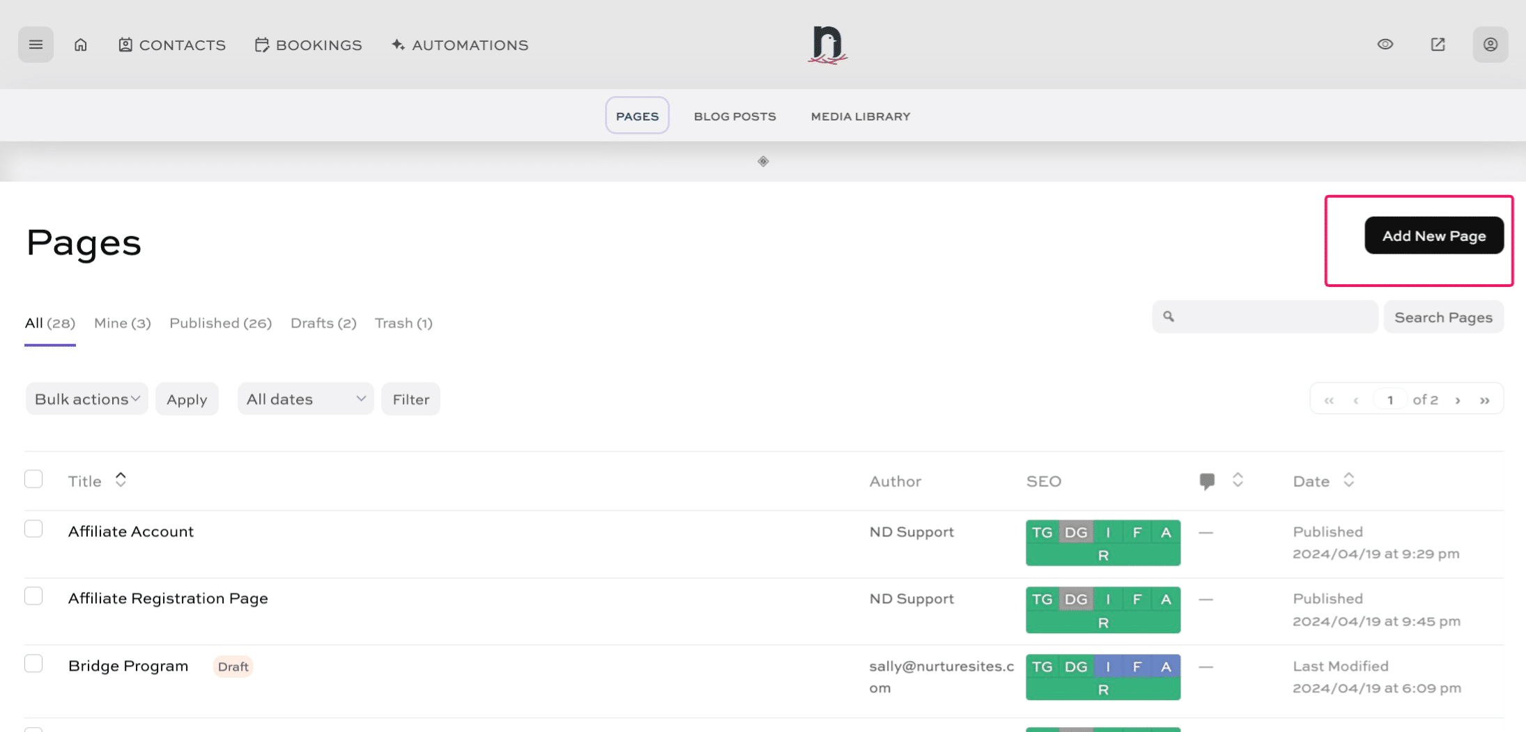 Click on "Add New Page"