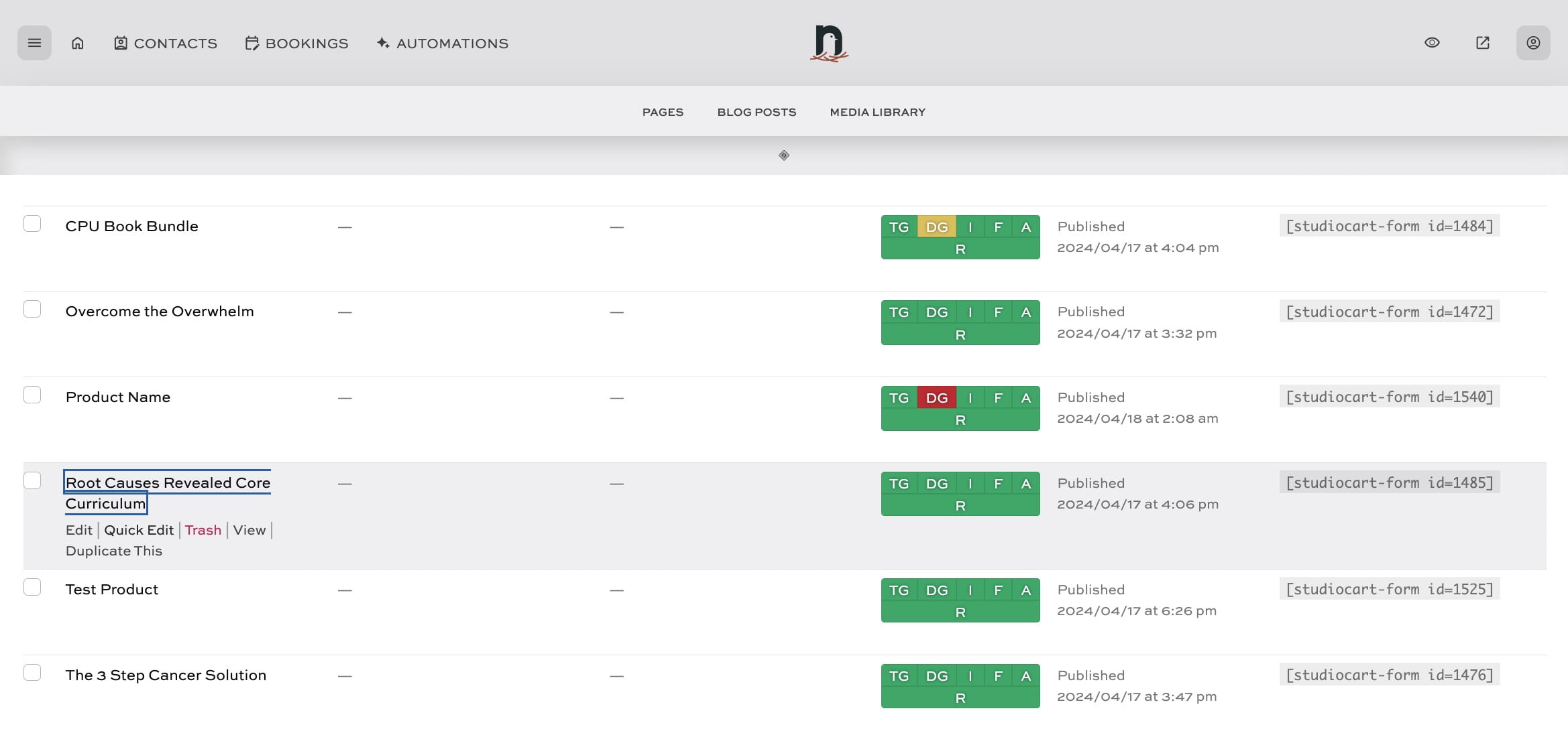 Navigate to the Products area