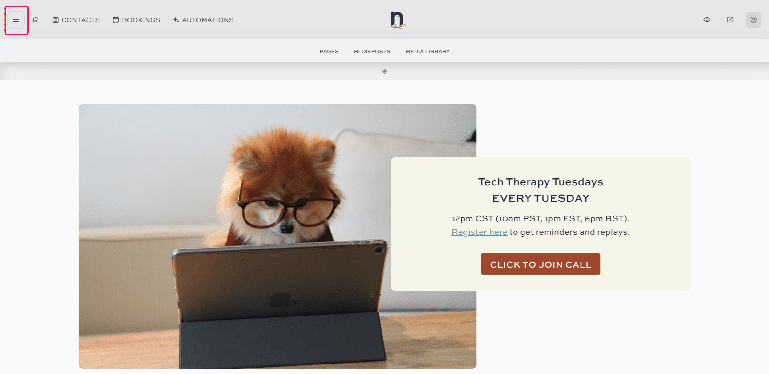 Click on "menu"