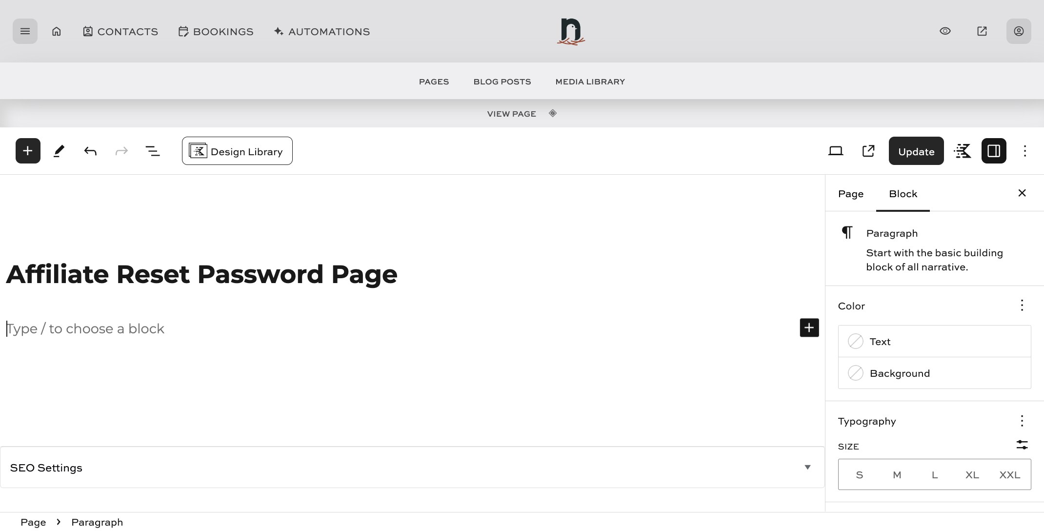 Paste the following shortcode into the shortcode block: [slicewp_affiliate_reset_password] Then click Publish/Update and you're done!