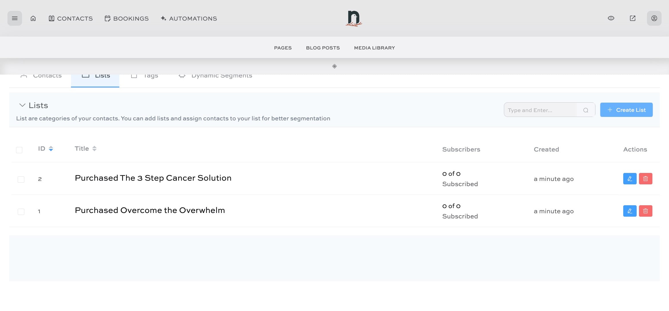 Click on "Create List"
