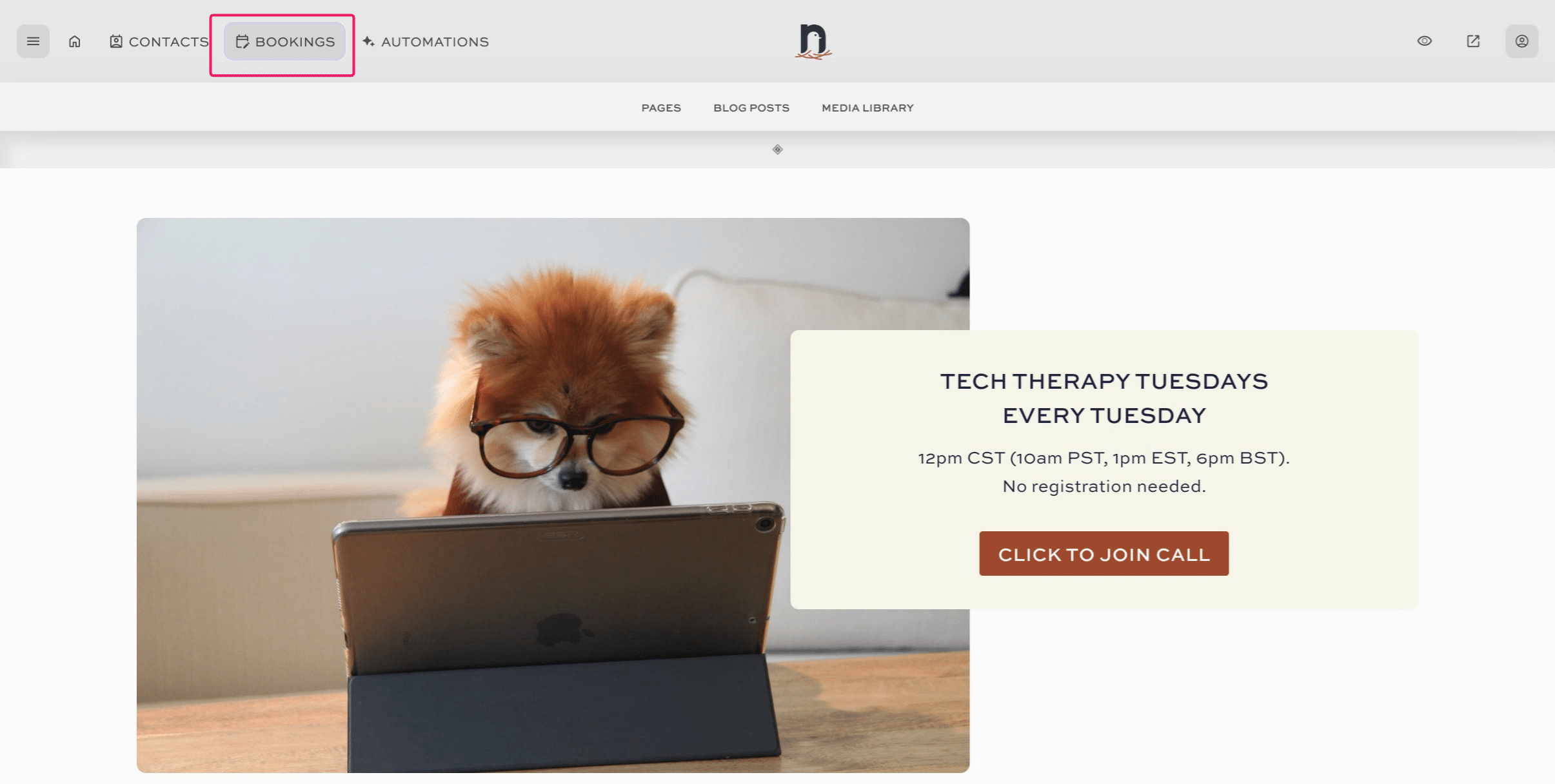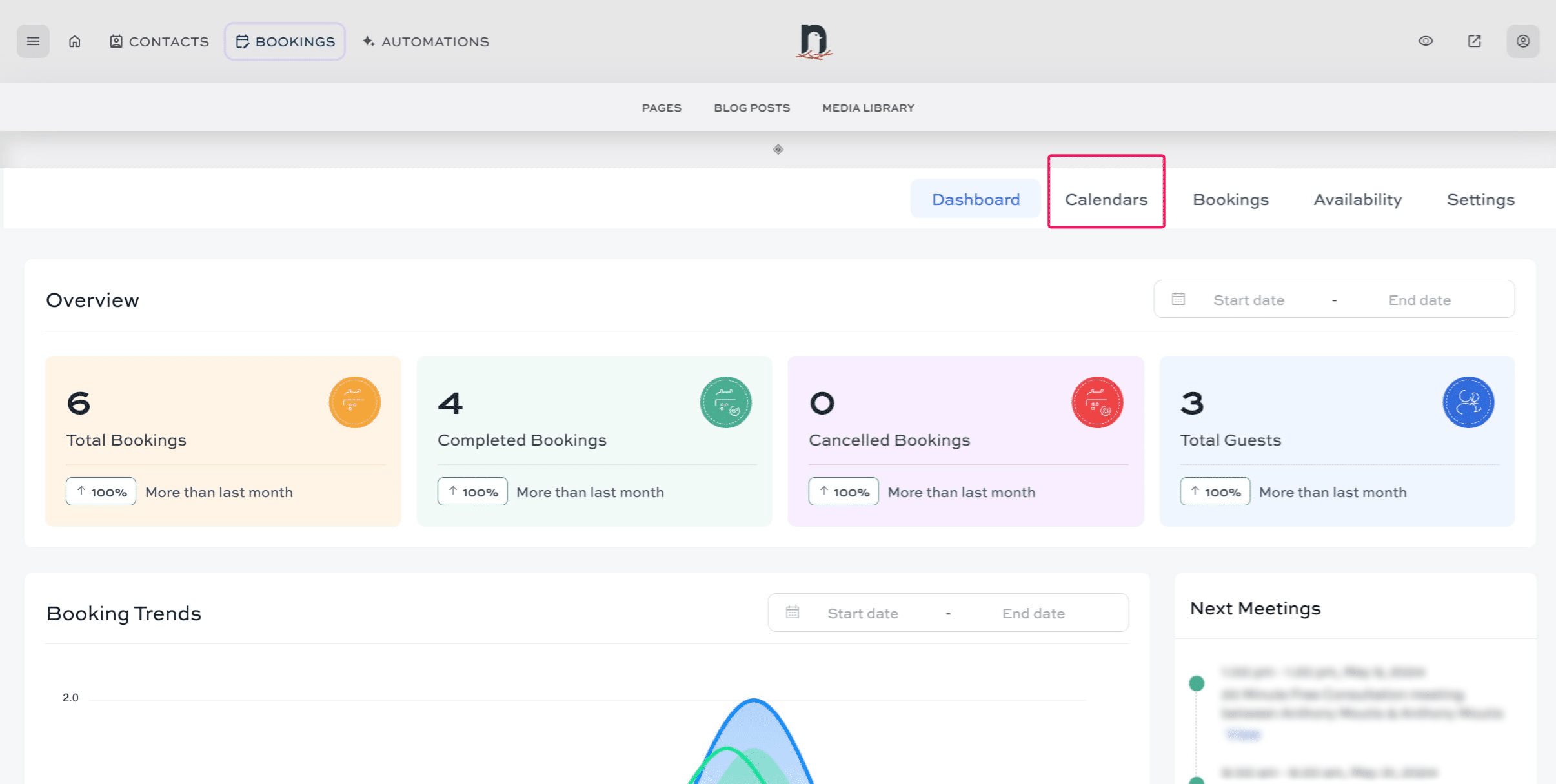 Click on "BOOKINGS"